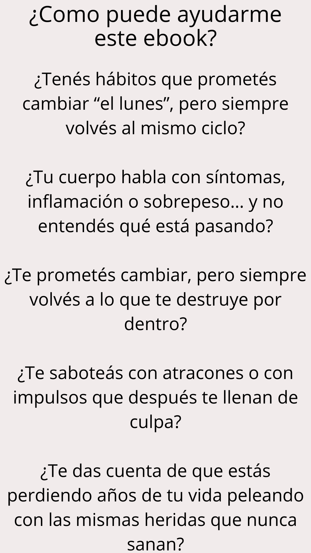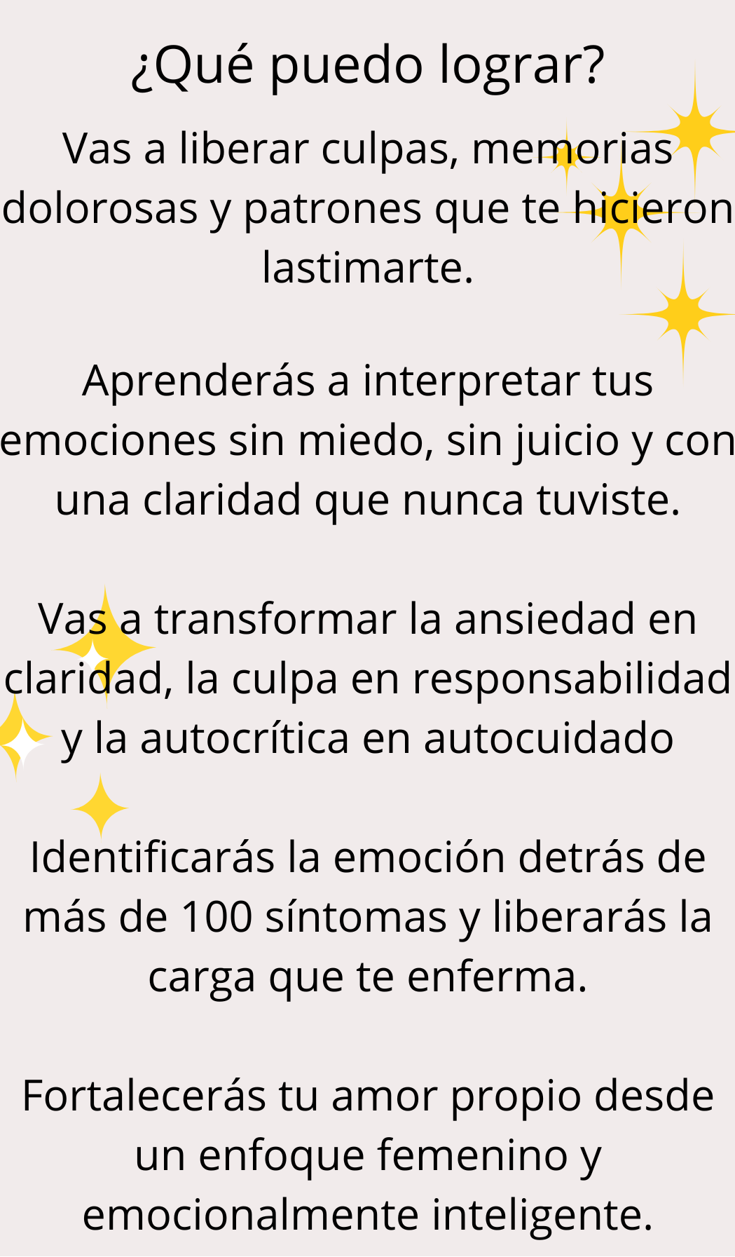 Perfecto. Este ebook no reemplaza la terapia: la complementa. Te da otra mirada —más intuitiva y profunda— para conectar los puntos que quizás aún no habías visto.